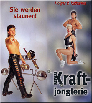 Kraft - Action - Akrobatik - Eleganz - Spannung - Power alles das können Sie in der einzigartigen Show von Holger und Katharina erleben.Ob Jonglerie mit 10 bis 25 kgKugeln und  laufender Motorkettensägen  oder der Genickfang mit einer  25 kg-Kugel.